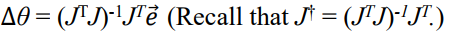 근데 J inverse은 구하기 어려우니까, J pseudo inverse (J+)를 구해서 접근하기로 했었음.