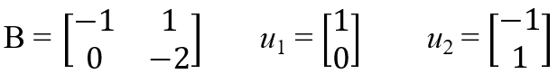 여기서 u₁, u₂는 B의 eigen vector입니다. (Bu₁ = λ₁u₁, Bu₂ = λ₂u₂)