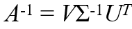 A의 SVD는 위와 같다. 양 변에 inverse를 취해보자. U와 V는 직교하므로, UT = U-1이다. (U-1U = UTU = I)