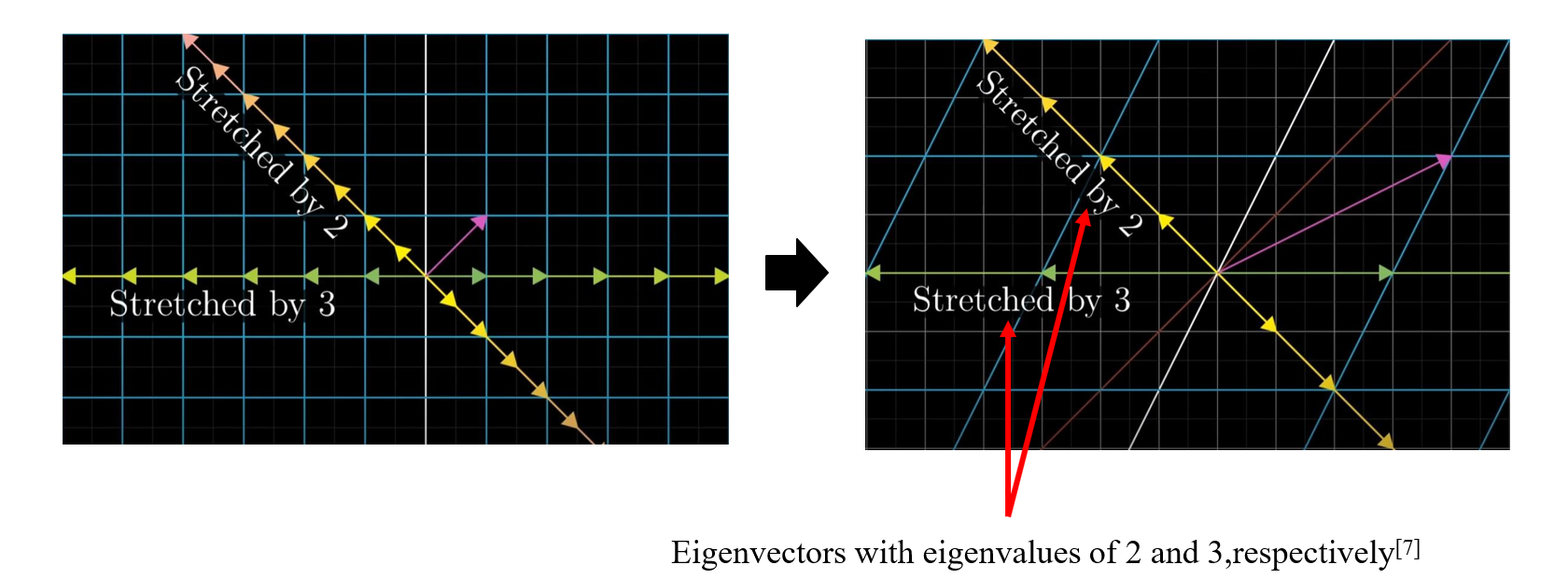 고유벡터는 변환(transformation)에 의해 늘어나는 방향을 가리키는 벡터입니다. "어떤 방향으로 늘릴 거냐"