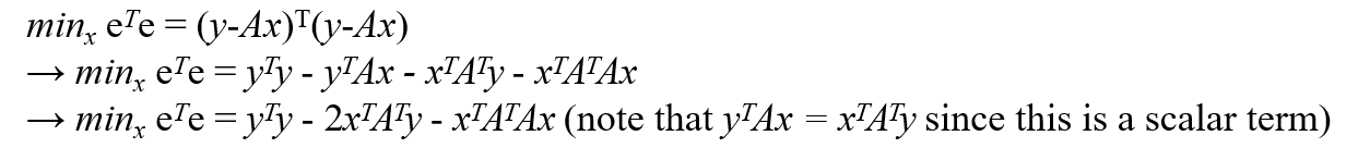 다음은 e = y-Ax를 대입해, eTe를 최소화하는 과정이다.