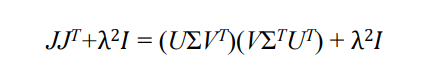 그럼 이제 JJT + λ²I를 구해야 함. 이때 SVD를 사용함.