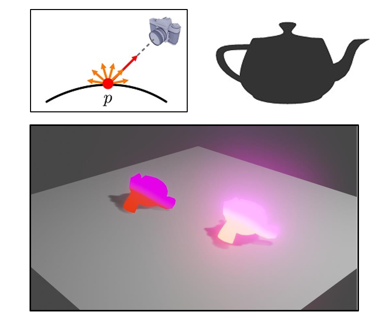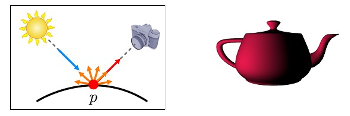 다양한 물체들에 튕겨서 한 표면으로 도달하고, 그 포인트 표면에서도 모든 방향으로 동일한 강도로 튕길 것임.