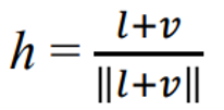 h는 light vector l과 view vector v에만 관련이 있는데, l+v를 정확히 반으로 나눈(bisects) 단위 벡터를 의미한다.