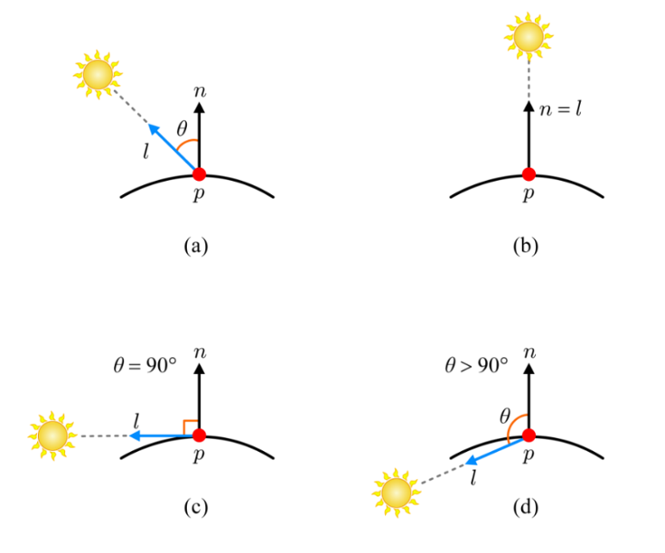 (계산상 편의를 위해, 모든 표면에 대해 방향이 동일한 direction light l를 정의한다.)