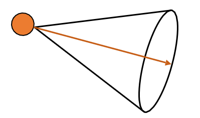 거리와 방향에 영향을 받는 콘(cone) 모양의 빛.
