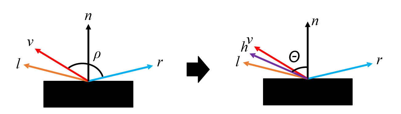 h가 l+v를 반으로 나눈 단위벡터라 할 때, 기존 rㆍv 대신에 nㆍh를 고려하는 방법.