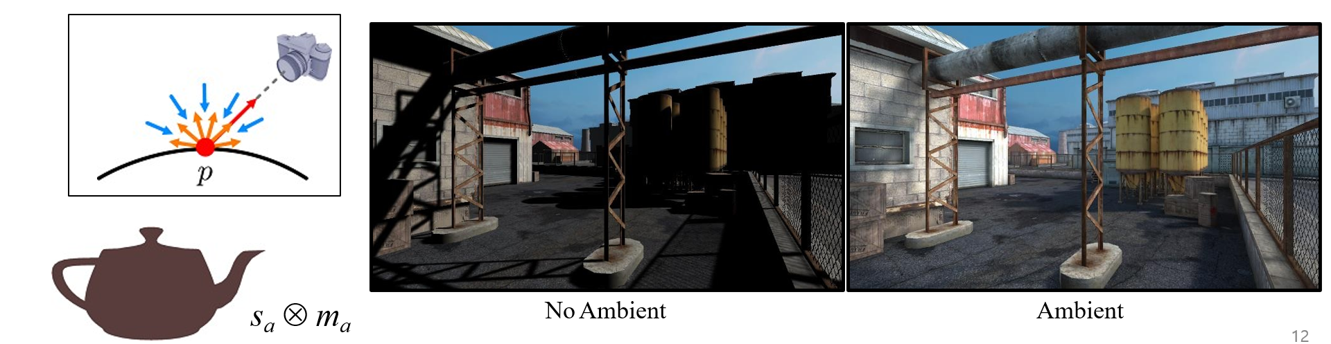 그러므로 상수로 표현해서 그럴듯하게 함. 모든 pixel들에 일정한 양의 조명을 주는 것.