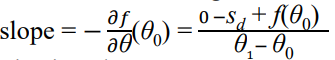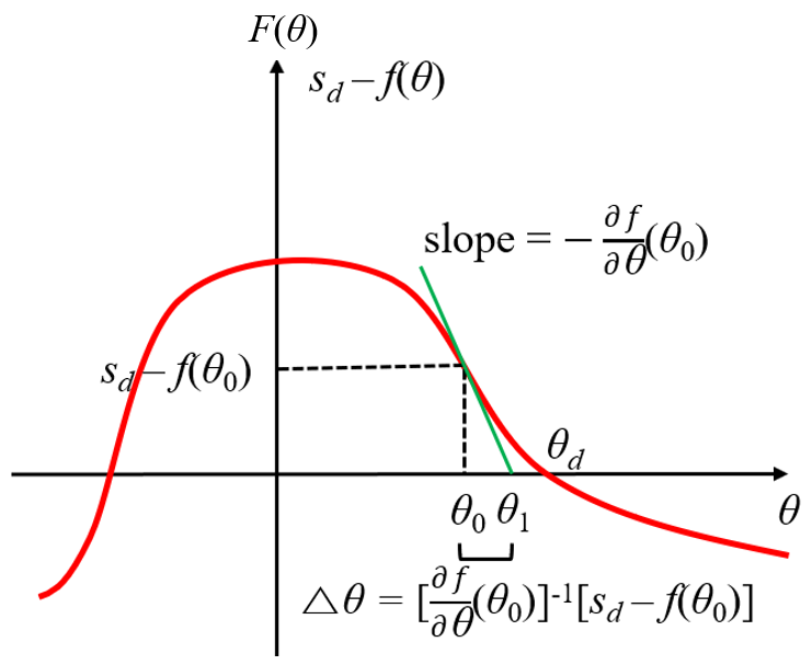 초기 추측을 θ0이라 하자. 우리는 F(θ0) = sd - f(θ0)를 계산할 수 있다.