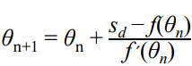 이때, sd - f(θn) = F(θn)이고, f`(θn) = -F`(θn)이므로 다음과 같이 나타낼 수 있다.