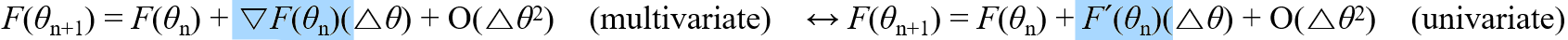 => 도함수 𝐹´(θn)대신에 그레디언트 ▽𝐹(θn)으로 대체되어야 합니다.