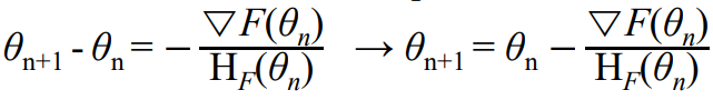 => 2차 도함수의 역수(reciprocal)인 1/F``(θn) 대신에 헤시안 행렬의 역수인 1/HF(θ0)로 대체되어야 합니다.