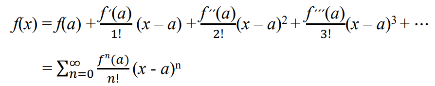 f(x)가 끊임없이 미분할 수 있다면, 다음과 같은 x = a에서의 테일러 급수를 만들 수 있다.