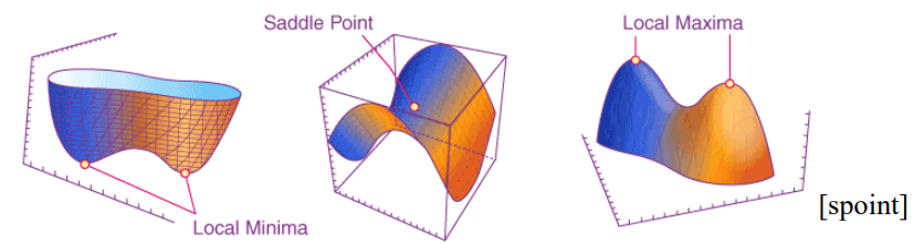 이 지점은 local minima, local maxima, saddle point 셋 중 하나가 될 수 있다.