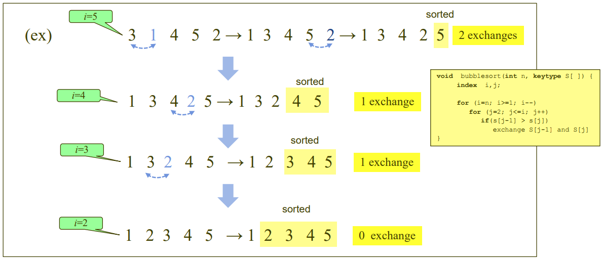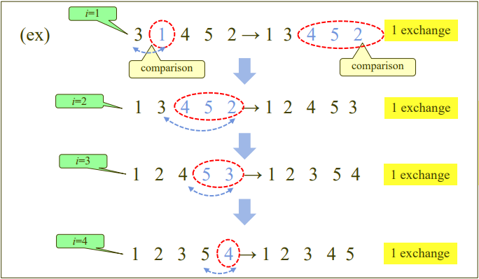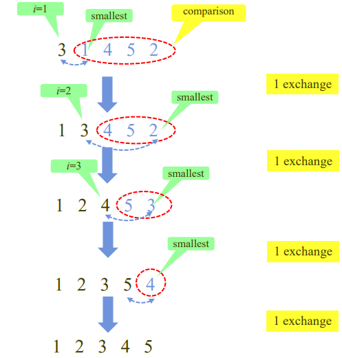 exchange S[i] and S[smallest]; // 끝까지 돌고나서, i번째 위치에 갱신된 smallest번째 데이터 넣음