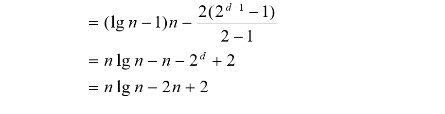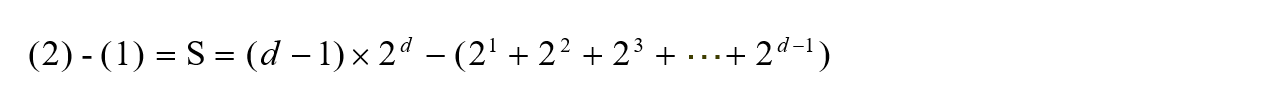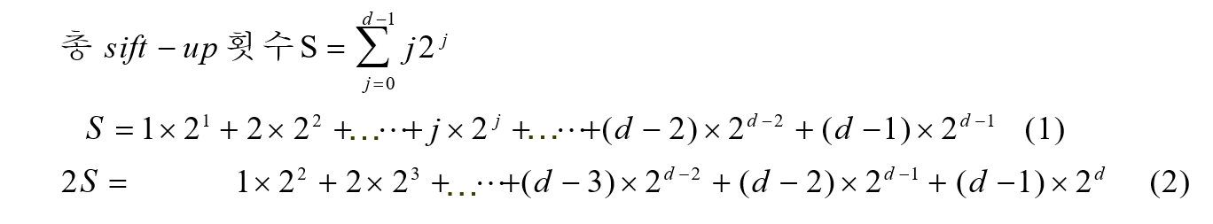 따라서 depth = d인 노드를 고려하지 않았을 때의 총 sift down 횟수는 다음과 같다.