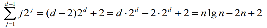d = lg n으로 치환하고, 뒷부분을 등비급수의 합으로 표현하자. 그리고 정리하면,