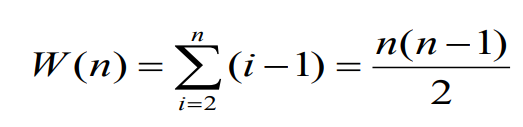 i가 첫번째일 때 비교횟수는 n-1, i가 두번째일 때 비교횟수는 n-2, …, i가 n-1번째일 때 비교 횟수는 1이 된다.
