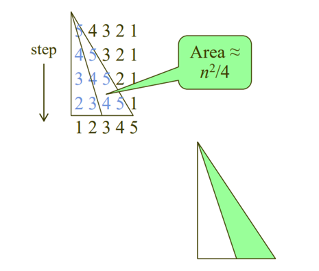 - 문제 자체의 분석 ✓ 이 문제의 복잡도의 하한은 Ω(n²) => 이는 Θ(n²) 알고리즘이 반드시 존재한다는 것을 의미하는 것은 아님. Θ(n²)보다 더 좋은 알고리즘을 개발하는 것이 불가능함을 의미