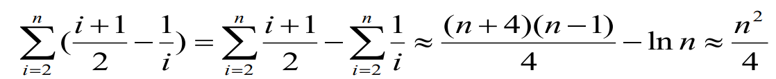 따라서, x를 삽입하는 데 필요한 평균 비교 횟수는 다음과 같다. (i-1)/i + Σ(i번째에 삽입될확률 * i번째에 삽입되는 경우 비교횟수)